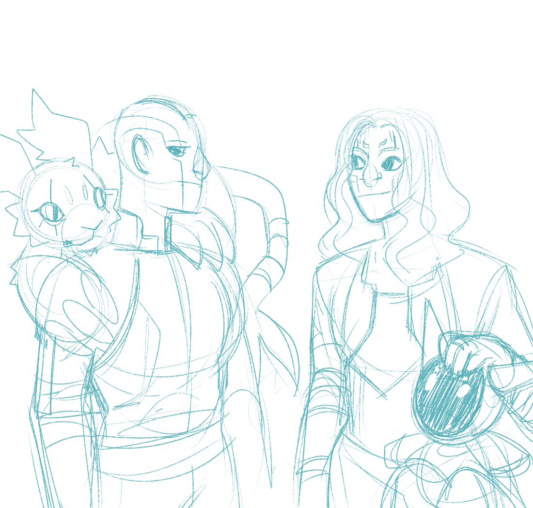 Note: Early DigiAU sketches. I believe I was still in the planning stages of who gets what Digimon but some of these have stuck around. I'm still pretty happy with most of these, but I've been so indecisive on Gamora's up until present day haha. This is from when I was considering Kotemon for Sword Reasons.