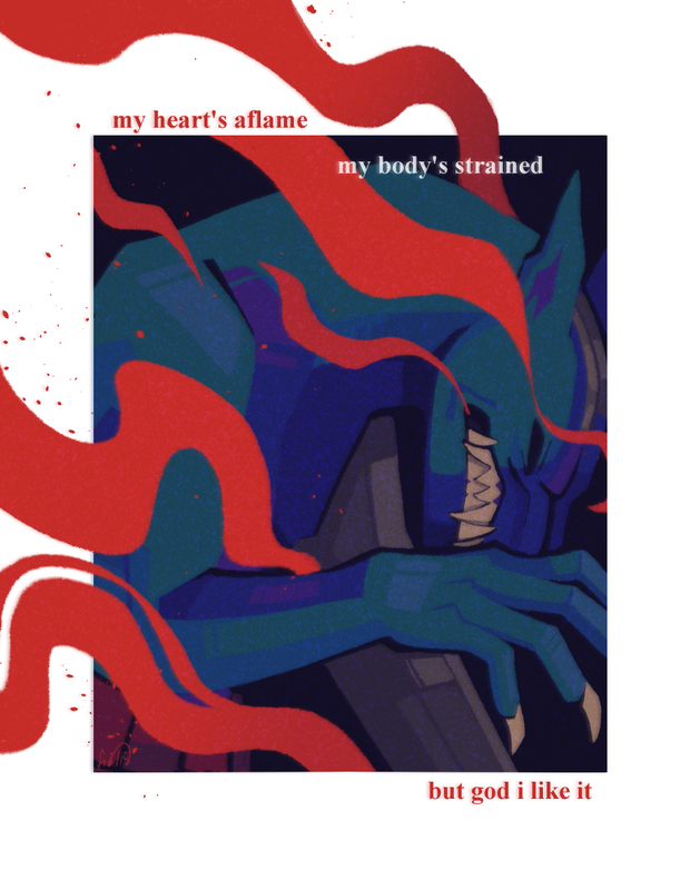 werewolf AU. I wasn't fully satisfied with this at the time of drawing, so I don't believe I ever posted it. Instead I ended up doing a complete paintover with a different brush and changed the execution a lot. That version eventually got posted, I think. But, now this one gets to see the light of day too :]